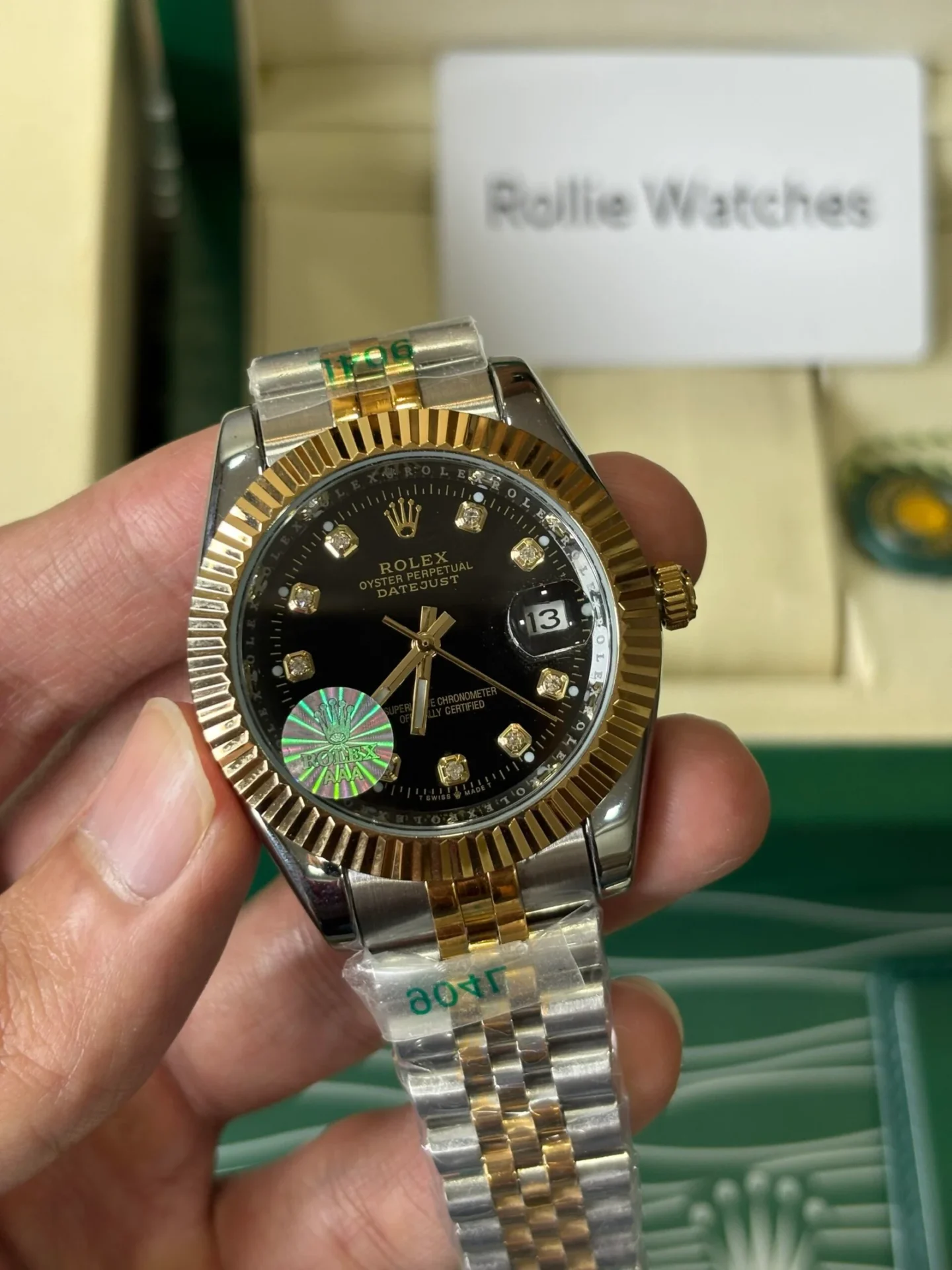 Elevate your style with our Rolex Perpectual Date Just Watch, crafted to mirror the original in every detail same design, weight, and automatic movement. Built with premium materials for a luxury feel that lasts.